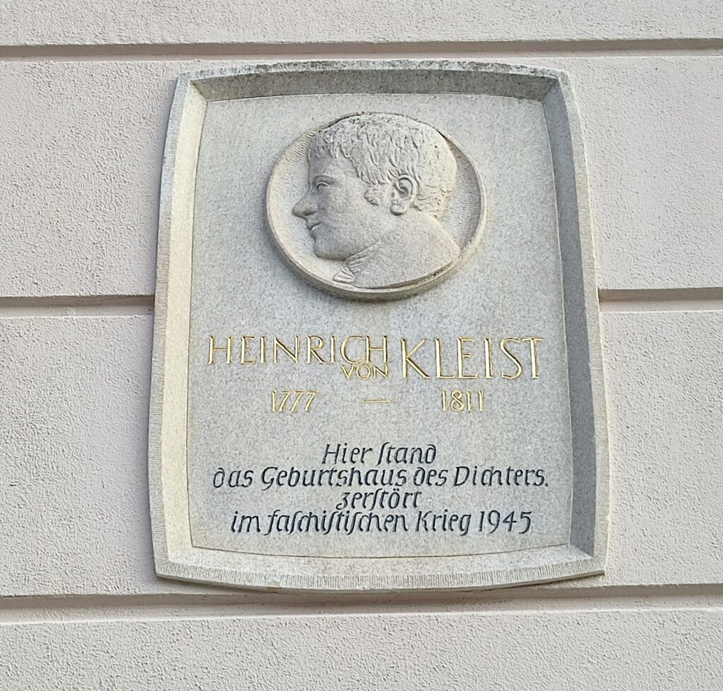 Vor Ort besuchten wir zunächst das Geburtshaus Kleists (bzw. erinnert heute nur noch eine Gedenktafel an das Gebäude)