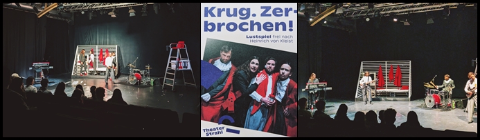 Am Donnerstag, den 2.10.25 besuchte der Grundkurs Deutsch Q3 eine Theateraufführung zu Heinrich Kleists „Der zerbrochene Krug“ am Theater Strahl in Berlin. Im Vorfeld wurde im Zuge des Rahmenlehrplans das Werk bereits gelesen, nun war der Kurs gespannt auf dessen Umsetzung. Im Anschluss wurde dann das Gesehene bei einem gemeinsamen Cafébesuch analysiert, ausgewertet und eine Rezension verfasst, welche die Meinung der Kursteilnehmer*innen widerspiegelt: